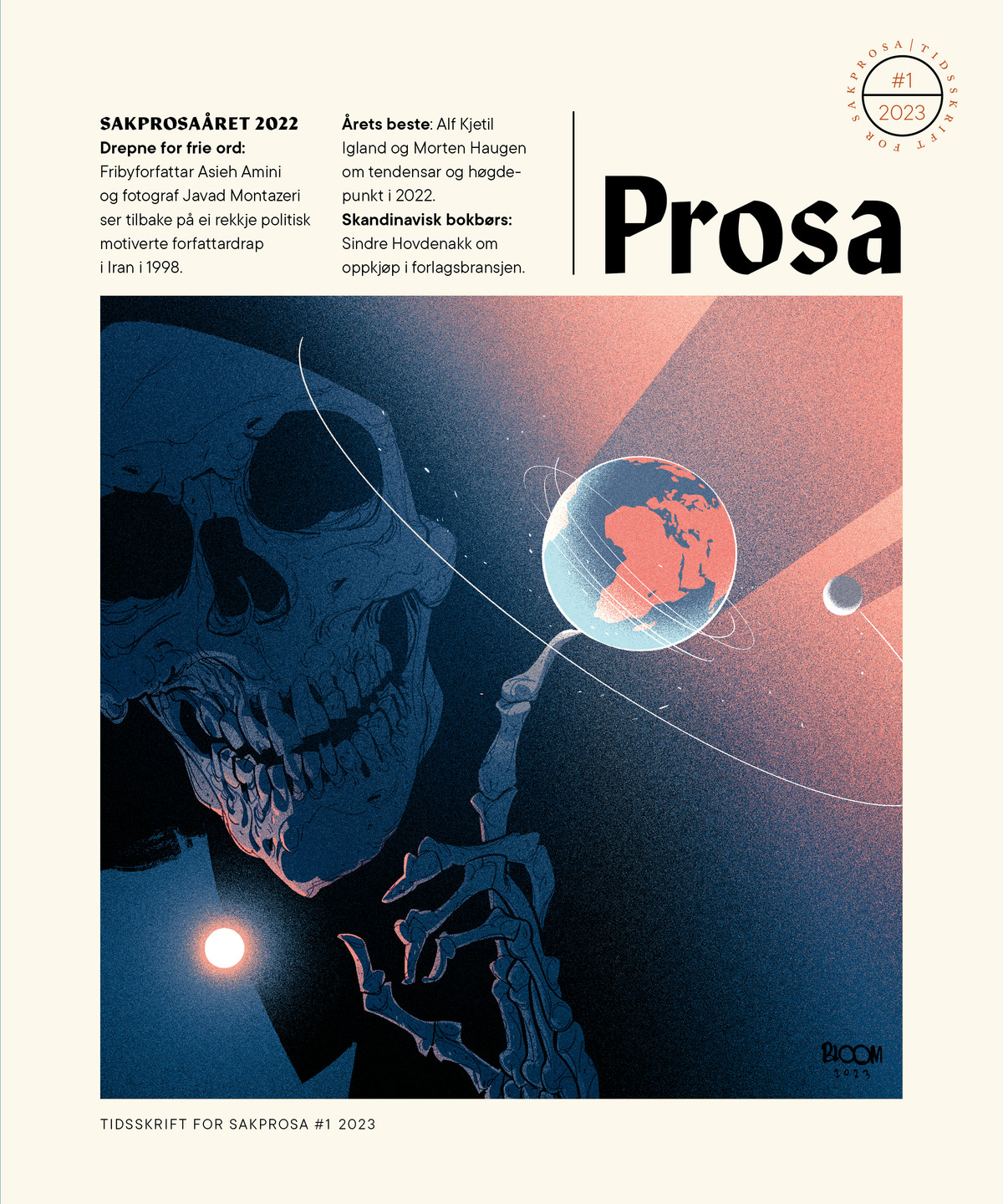 Vi er glade for å kunngjere at ein av landets beste avisteiknarar, Christian Bloom, skal teikne for Prosa i heile 2023. Til dette nummeret har han levert ein slåande framsideillustrasjon og portrett av Bjørn Olav Jahr. Design av Johanne Hjorthol.