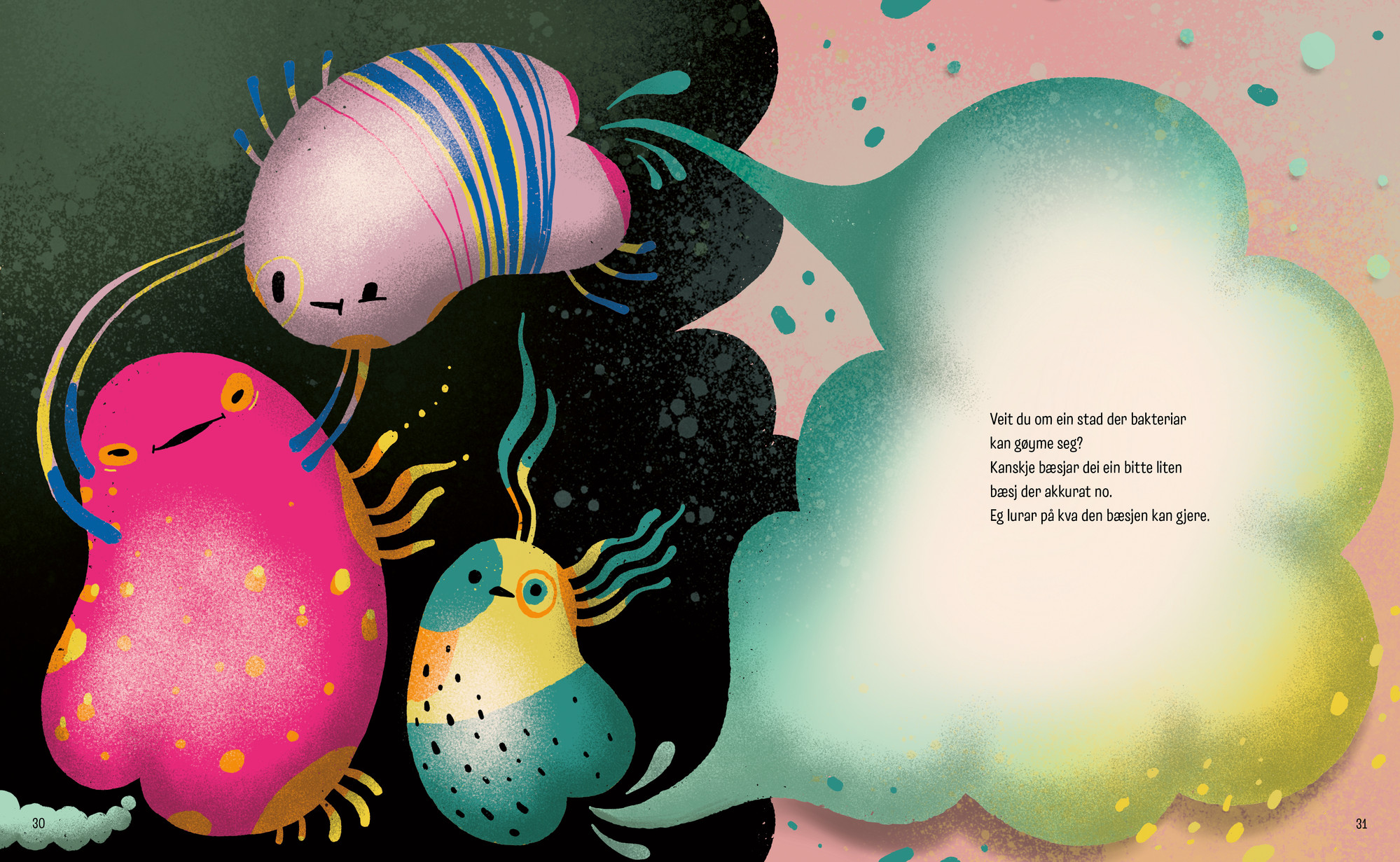 Unni Vik: Kan bakteriar bæsje? Illustrert av Tiril Valeur, Gyldendal