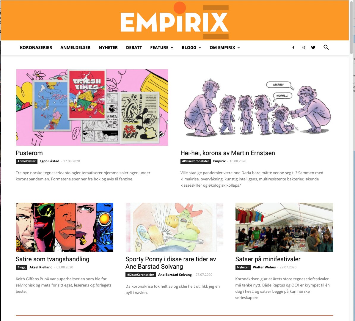 Både Empirix og Serienett har som mål å løfte aksepten for tegneseriemediet, og det farger utvalget av tekster og innrettingen på dem. Hos begge er det en forkynnende tråd gjennom arkivet av anmeldelser, som vitnesbyrd om alle de historier og fortellermåter tegneseriene kan by på. Samtidig er det hos Empirix et tydeligere ønske om å gå utenfor subkulturen, gjennom en kritisk distanse til sitt eget fascinasjonsobjekt. Spørsmålet er ikke om man er fan, men om man er den riktige typen fan, en feinschmecker som leser The Comics Journal i stedet for å kle seg ut som en superhelt på festival (men kanskje har et kostyme i skapet?).