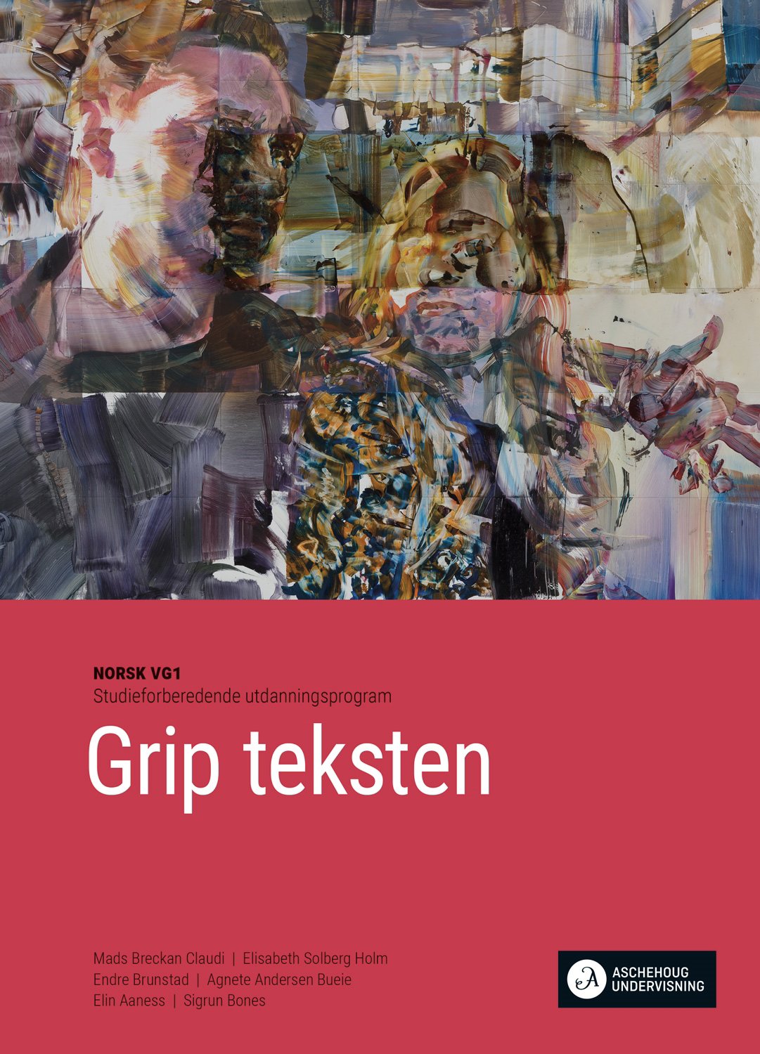 Grip teksten. Norsk Vg1. Studieforberedende utdanningsprogram. Av Mads Breckan Claudi, Elisabeth Solberg Holm, Endre Brunstad, Agnete Andersen Bueie, Elin Aaness og Sigrun Bones. Aschehoug Undervisning (2020)