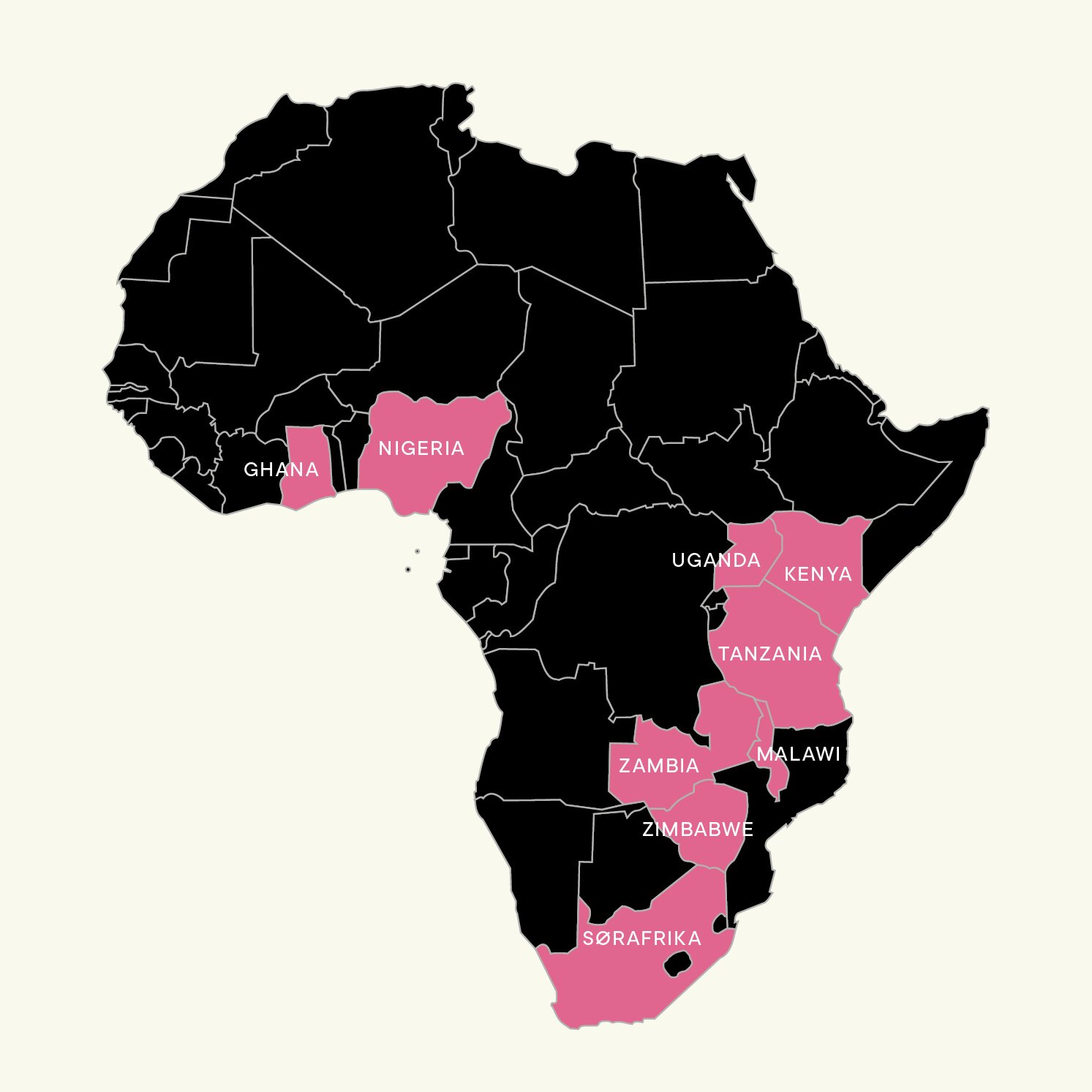 Det er dette som er bakteppet for engasjementet frå Kopinor og NFFO. Kartet nedanfor illustrerer avtrykket som dei to organisasjonane har sett på det afrikanske kontinentet.