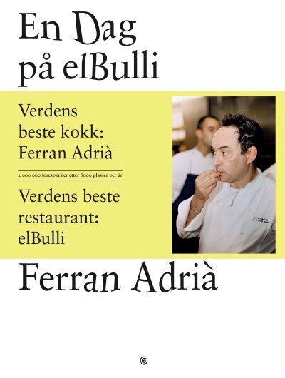 To av bøkene i stabelen skiller seg ut, både i format – tunge, svære – og innhold: De er ikke egentlig kokebøker, men presentasjoner av verdens angivelig to beste restauranter. En dag på elBulli er en hyllest til ”ideene, metodene og kreativiteten til Ferran Adrià”, dokumentert gjennom en dag ved spisestedet i det nordlige Spania før det stengte for godt i fjor sommer (uten at det opplyses om det). (5) Det handler om et ”avant-garde-kjøkken”, om avanserte teknikker for kjemisk manipulasjon av ingredienser. Bildene dominerer, med små tekster som dette: ”Snacks klare til servering: Maltmel-luftbaguette med karamellisert kanel-’godteri’, Svart oliven-oreokjeks med kremfløte, Parmesan-marshmallow.” Det er nesten umulig å vurdere oversettelsen av dagens 30-rettersmeny når ingen av rettene likner noe gjenkjennelig. Jeg kan uansett tenke meg en mer oppklarende forklaring enn denne: ”Begre til Pacojet-en, en maskin som brukes til å lage sorbeter og frosne pulvere, fylles med pudret uttrekk av grønne furukongler, og mangostaner blir delt i båter før servering.”