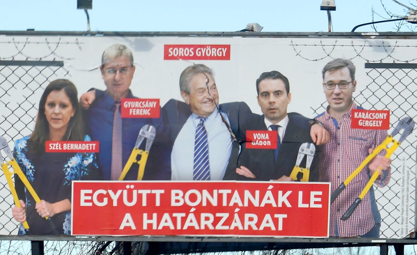 Ingen som har vært i Budapest i det siste, kan ha unngått å legge merke til de store plakatene med bilder av den ungarsk-amerikanske mangemillionæren George Soros i ulike sammenhenger. I vinter var det særlig en plakat der han var manipulert inn i et gruppebilde sammen med lederne for de fire viktigste opposisjonspartiene, som stjal oppmerksomheten. På plakaten var alle de fire partilederne utstyrt med hver sin store avbitertang og sto sammen med Soros foran et gjerde med hull i. Tittelen under lød «Sammen åpner vi opp gjerdet». En klar hentydning til den sterke innvandringsmotstanden og islamfrykten som preger det ungarske samfunnet. Det spesielle er også at det er et statlig informasjonskontor, ikke et politisk parti, som står bak plakatkampanjen.