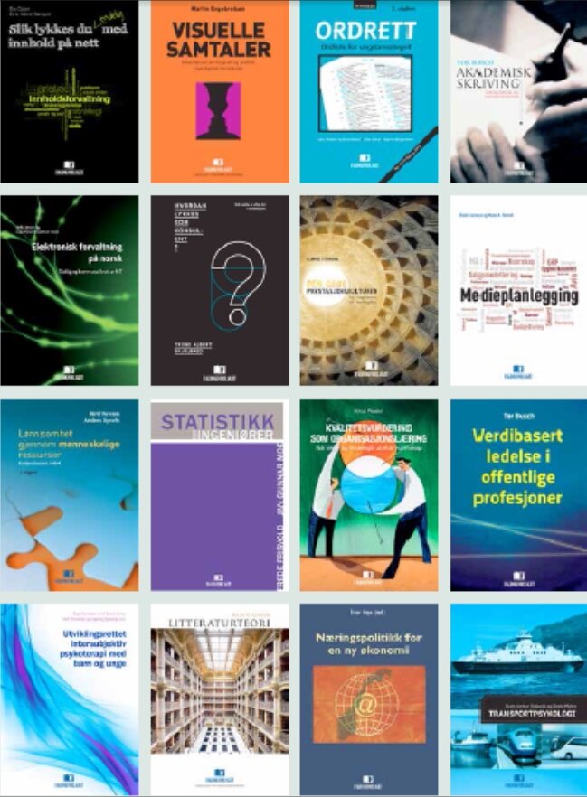Ikke slik i Fagbokforlaget. Hvis jeg hadde fått i oppdrag å vurdere hvordan jeg trodde det gikk med dette forlagshuset, basert på en analyse av forlagslogo, nettsider, bokomslag, boktitler – kort sagt det man kan kalle forlagets visuelle profil – ville jeg svart: Dårlig. Dette var traust og kjedelig. Usexy. Lite i takt med tiden vi lever i. Og vi kunne tilføyd, etter å ha forhørt oss litt om hva folk i bokbransjen tenker om Fagbokforlaget – anonymt, selvsagt – uten å kjenne forlaget fra innsiden: Her holder man på med masseproduksjon av pensum med slepphendt redigering og korrektur.