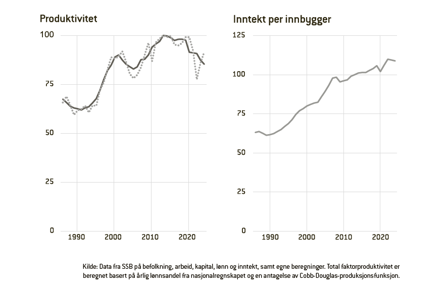 Det er ikke nok for å forstå regnestykket. Det ser tilforlatelig ut, men nøkkelen til landets økonomiske misere ligger jo her. Produktivitetsfallet betyr 440 milliarder i tapte inntekter for landets innbyggere siden 2013, skriver forfatteren. Sigurd Bjørnestad i Aftenposten hevder påstanden strider mot offisiell statistikk. Jeg sjekker med et par Blindern-aktige økonomer som kan mer om dette enn meg. De forstår fremgangsmåten, men kommer frem til at den totale faktorproduktiviteten tvert imot har økt siden 2013.