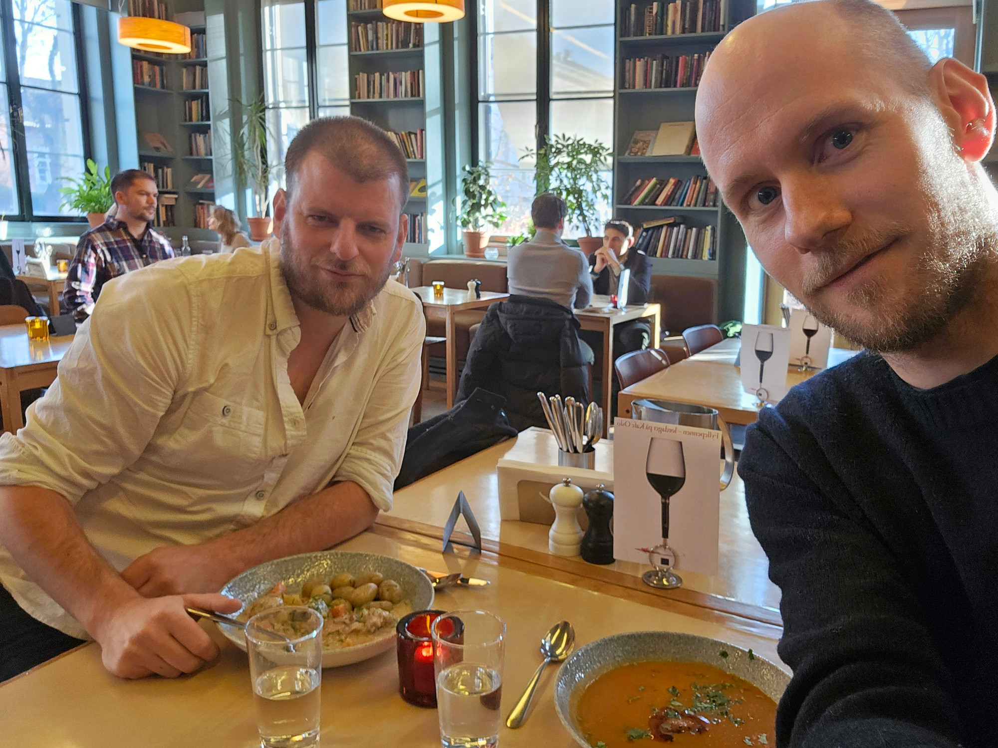 – Du har ikkje peiling på tidsskrift, madman. Men eg skal kome ein tur, så vi kan ete ein bolle. Eg likar bolle. Det blir bra stoff for Prosa, med bilete og det heile.