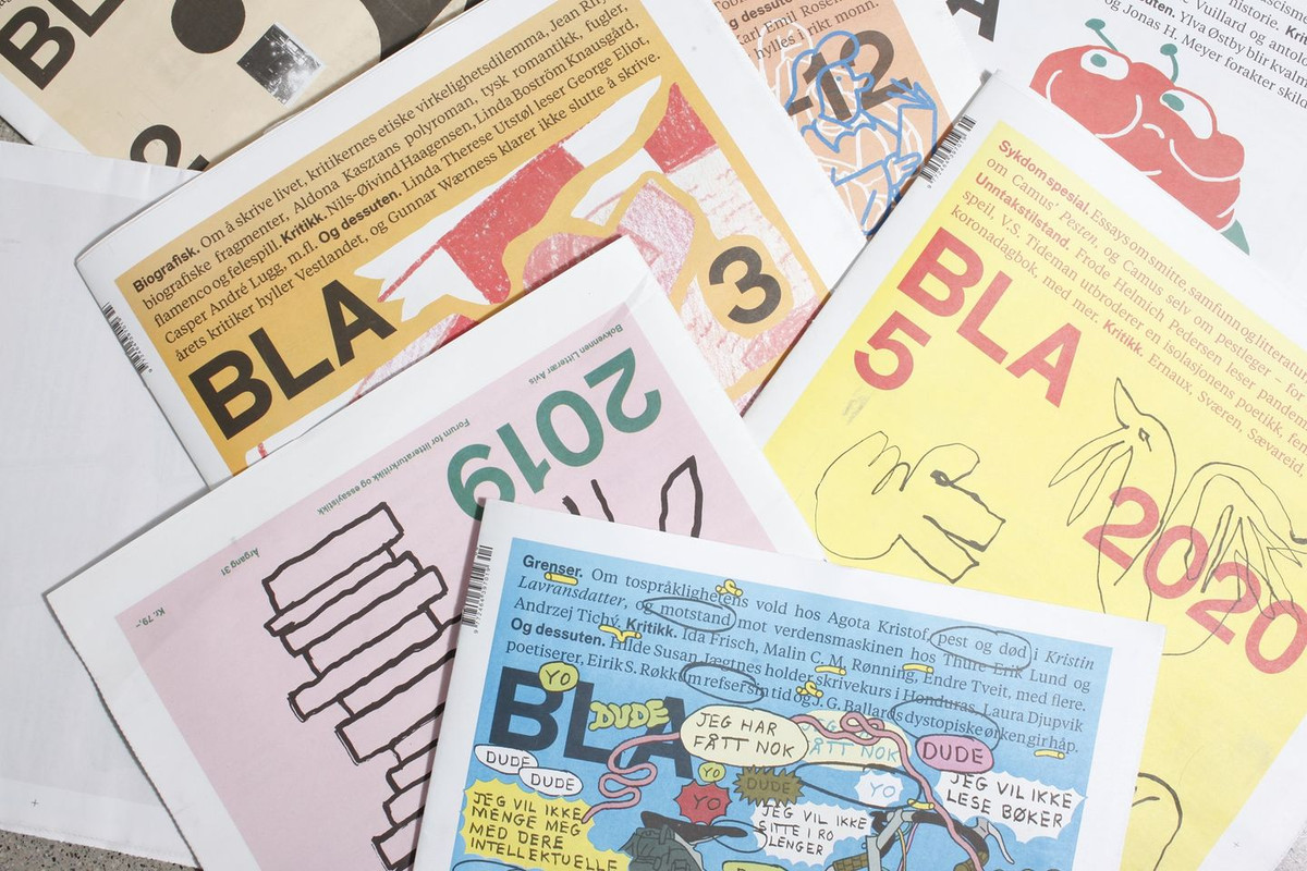 BLA står for Bokvennen Litterære Avis, og er en avlegger av tidsskriftet Bokvennen Litterære Magasin (BLM). BLM ble til BLA i 2016. BLA er det yngste av våre allmenne litterære tidsskrift, og det gjelder også for redaksjonen og mange av bidragsyterne. De er blitt kalt den nye vinen. Fordi de kommer med noe nytt? Eller fordi de har en annen tilnærming, en annen stil? Tja, sier kritiker Frode Helmich Pedersen når han prøver seg på en analyse i nr. 10/2021 (Pedersen har tidligere vært medlem av redaksjonsrådet i BLA). Vi blir vel egentlig ikke presentert for en ny måte å forholde oss til litteratur på, sier han, selv om tonefallet i presentasjonene antakelig er nytt; de søker ikke mot å dyrke «sine fiendskap med stor energi», men understreker vennlighet. Ja, og så er han skeptisk til et utsagn fra en av kritikerne tilknyttet BLA, Johannes Grytnes, som sier han ønsker seg en litterær fest. Det er det ikke så lett å få til, sier Pedersen vektig, han er jo en del eldre, en de både beundrer og gjerne tar et oppgjør med (8/2021), han er redaksjonens onkel. Men så, noen måneder senere, i det siste nummeret jeg har lest, nr. 5/2022, får vi et fyrverkeri av et blad. Noe slippes løs, og jeg lurer: Er det generasjonen selv, den som BLA-folket tilhører, som på en måte uttrykker og feirer seg selv her?