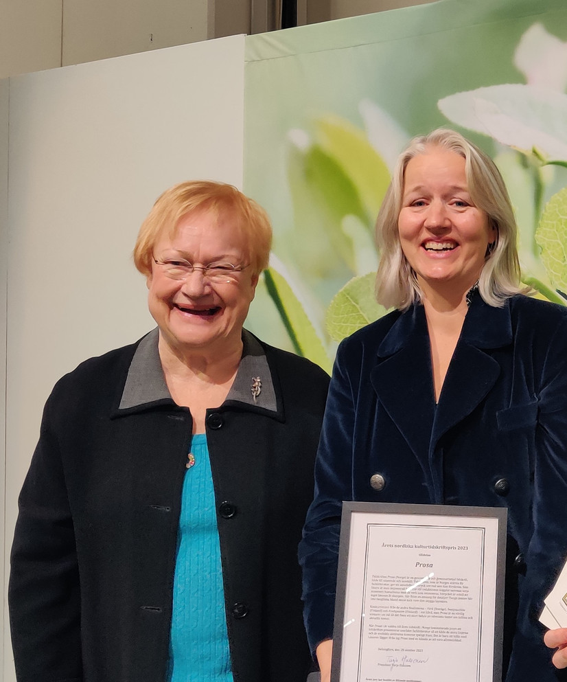 Prosa har blitt kåra til Årets nordiske kulturtidsskrift 2023! Redaktør Merete Røsvik tok imot prisen under bokmessa i Helsinki 28. oktober.