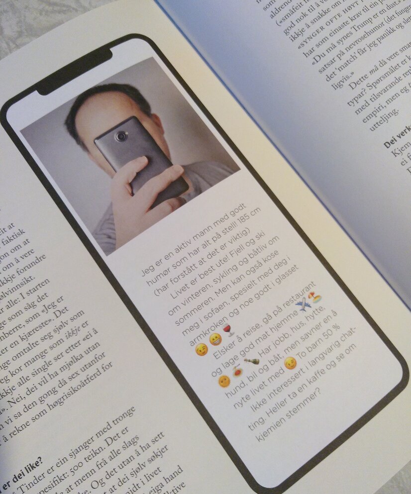Blomar i bruksprosa: Trass håpet som tindrar blåkvitt frå skjermen, er den jamne Tinder-teksten minimalistisk og anonym på grensa til det sjølvutslettande.